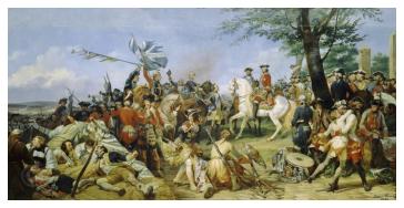 | The Irish Brigade presenting captured British Colours to Louis XV at Fontenoy |