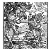 The piece was created by the renowned silversmith, Graham Harron of Hillsborough and the image was inspired by a 16th century painter, Hans Holbein, with alterations intended to give it a special military significance. Holbein's original series of woodcuts were inspired by 'death ad the ever present companion of life'. The Grim Reaper’s scythe has three blades to signify the 3rd Battalion, while in his left hand, he carries the cap badge of The Ulster Defence Regiment. The panels on the sides of the plinth name the officers who were still serving in the Battalion at the time of the merger and were responsible for commissioning the piece. The narrative of the sculpture is that of the Grim Reaper carrying off the 3rd Battalion The Ulster Defence Regiment into eternity.