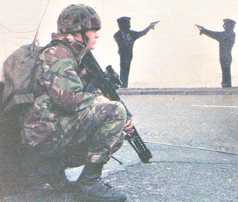 At 0409 hours on 24 October, while 4 Platoon were manning R15, it was attacked by a proxy bomb delivered by a ’hostage’ van driver. The incident resulted in the murder of Ranger Cyril Smith and he was posthumously awarded the QGM (Queen’s Gallantry Medal). B Company later reverted to 2 R IRISH’s command and moved to Clogher in South Tyrone. The company’s main task there was overwatching and controlling BCPs (Border Crossing Points).