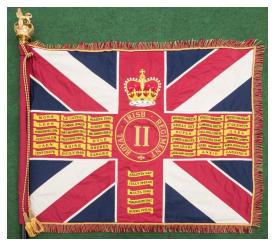 | The Queen's Colour emblazoned with First World War and Second World War Battle Honours. |