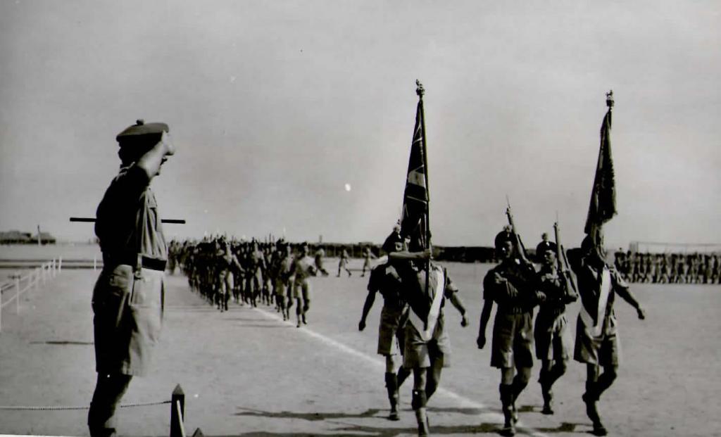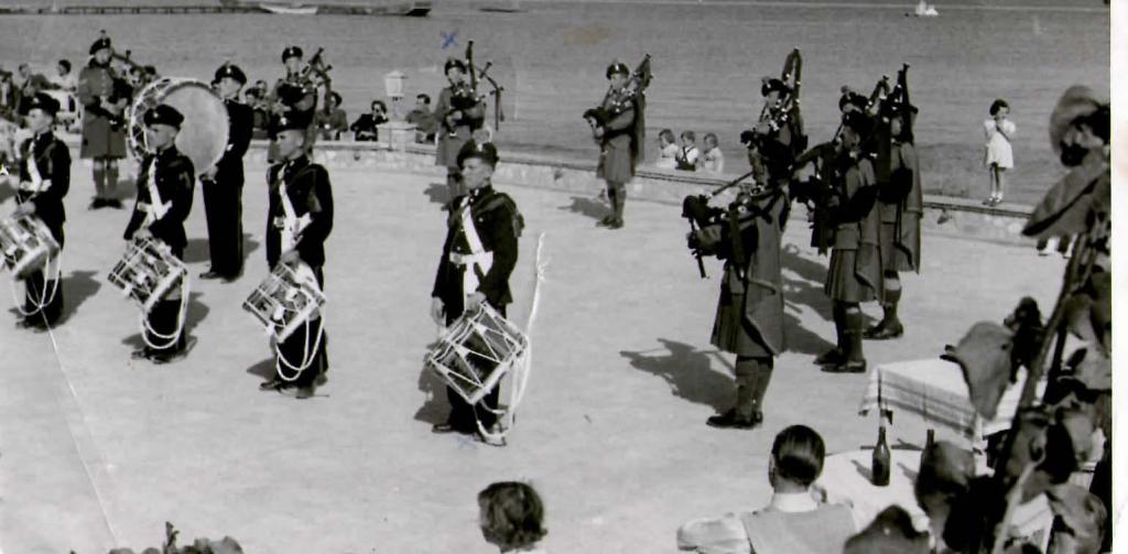 For no specific reason, a Beating of Retreat was planned for the evening of 6 February. The ‘elite’ of the British community in the Zone (mainly military) had been invited, including to the Officers Mess party afterwards. Early in the morning, to great consternation, there was a rumour that HM King George had died. The Commanding Officer, Lieutenant Colonel (later Major General) Denis Moore asked the Divisional Commander - Major General Sir Hugh C Stockwell KBE CB DSO - for advice. He said that the party should go ahead because first, it was a rumour and secondly there was no telephone network. Moreover, there was no other means by which the guests could be contacted to advise them of any change.