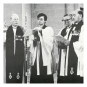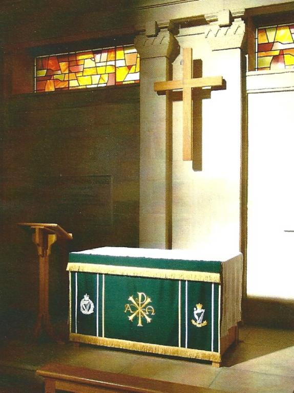 The Regimental Chapel was dedicated by the Rt Rev Arthur Butler, Bishop of Connor and a former Army Chaplain, at a special service on 6 June 1981, which was attended by many former and serving members of the Regiment and its antecedent regiments. Most of the furnishings in the Chapel have been gifted by former members of the Regiment, many in memory of fallen comrades. The chapel is dominated by a fine stained glass window bearing the regimental crests and includes lines from Binyon's “For the Fallen”. On the formation of the Royal Irish Regiment in 1992, the Chapel became the Regimental Chapel of the Royal Irish Regiment. Each year the Dean and Chapter of the Cathedral have granted the Regiment permission to hold two special services in the Cathedral. On the Sunday before the national Remembrance Sunday, the Regiment holds an Annual Remembrance Service and on the anniversary of the chapel’s dedication, a service of Holy Communion is held in the Chapel.